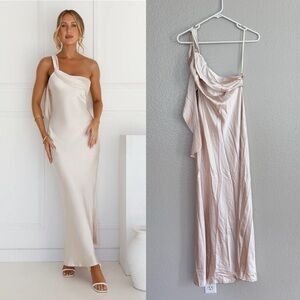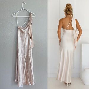 Selfie Leslie ROMANTIC TALES SATIN ONE SHOULDER MAXI DRESS CHAMPAGNE