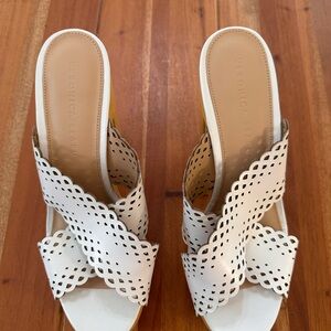 Veronica Beard White Eyelet Leather Wooden Platform Mules Sandals 8.5M