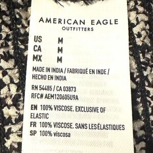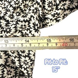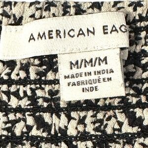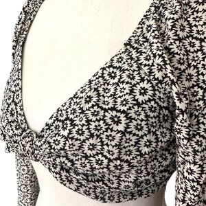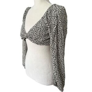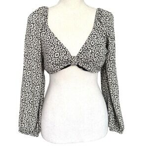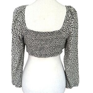 American Eagle Black White Floral Smocked Crop Top Women's M Long Sleeve Boho