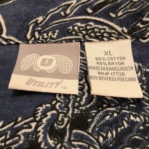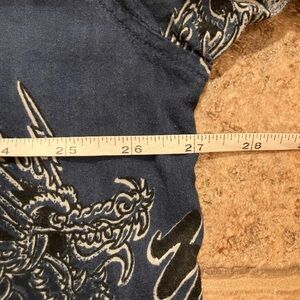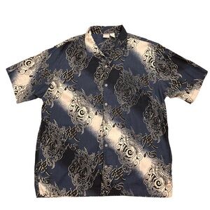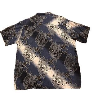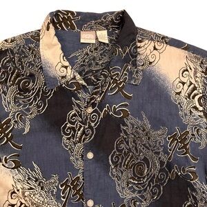 Y2K Utility Dragon Button Up Shirt XL Blue Cotton Rayon Asian Graphic