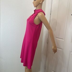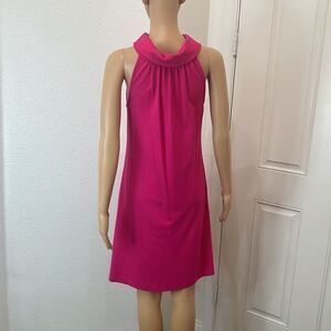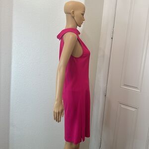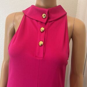 1901 Dress Hot Barbie Pink Gold Size 4 Halter Button Collar Neck Sleeveless Midi