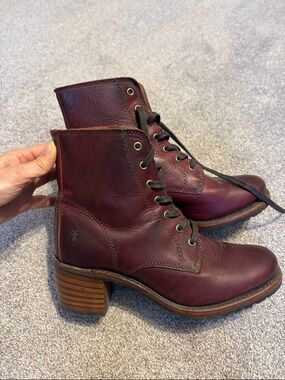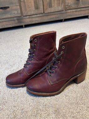 RARE Frye Sabrina 6G Oxblood Leather Lace-Up Combat Boots