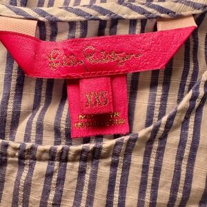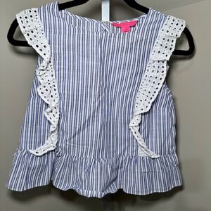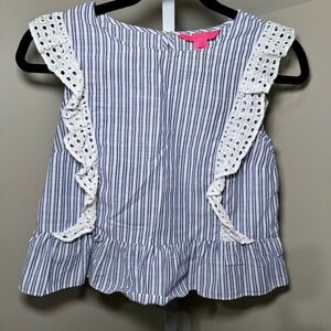 Lilly Pulitzer Ellis Blue White Striped Eyelet Ruffle Peplum Top XXS Cotton