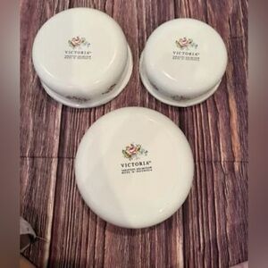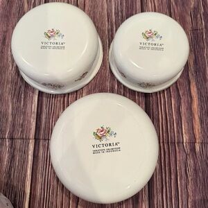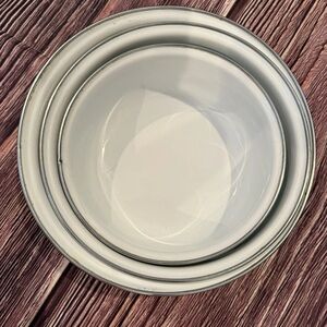 Victoria Silk Flowers Metal Enamel Nesting Bowls Mixing BowL Grandma Cottage VTG