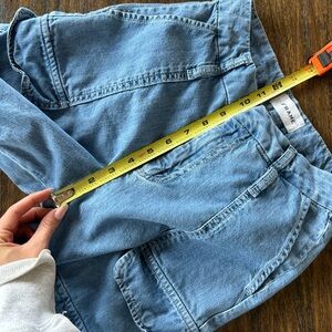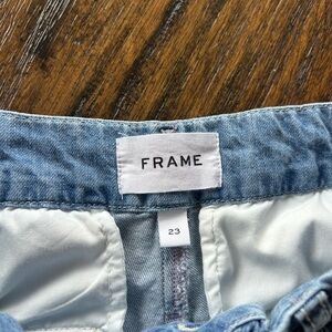 No longer sold. Softer denim. They almost flow like linen pants. High rise. Very gently worn. The rise was a bit too high for me. Snap pockets. Perfect to add to the closet for fall!