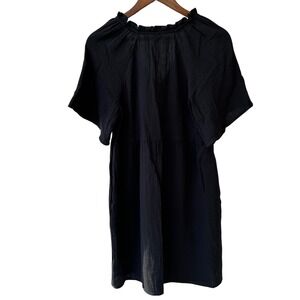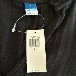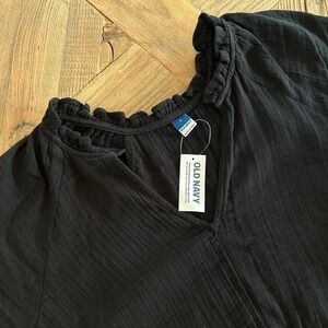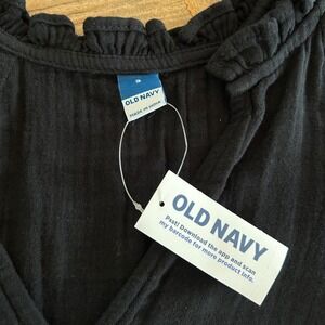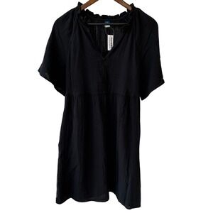 Old Navy SS Demi Swing Dress Black Jack Cotton Gauze Ruffle V-Neck Small NWT