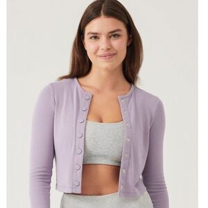 Outdoor Voices Cozy Rib Cropped Cardigan Earl Grey Lavender New XS