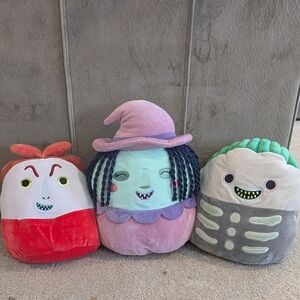 This custom bundle of 3 Squishmallows is the trio from Disney Tim Burton’s The Nightmare Before Christmas. It includes Lock, Shock, and Barrel in the 12-Inch size! These officially licensed Disney Squishmallows do not have their tags, but they were only used as decoration and are ready for a new home! They feature an ultra-soft plush fabric perfect for hugging, collecting, or gifting. A must-have for fans of Halloween Town and great as Halloween or Christmas decor!