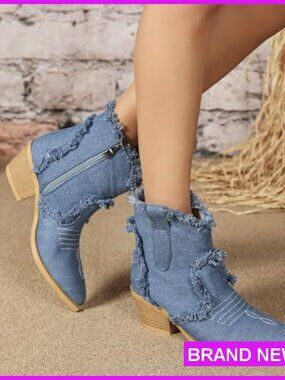 Brand new, never worn, and in flawless condition — these fashion-forward denim ankle boots deliver a chic western look perfect for parties, festivals, daily wear, or country events. The pointed toe and embroidery detail add a touch of sophistication, while the stable block heel ensures all-day comfort.