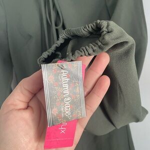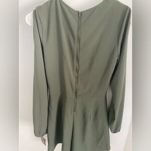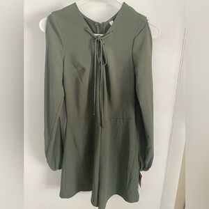 Xhilaration Olive Green Long Sleeve Tie-Neck Romper with Sleeve Cut Outs NWT