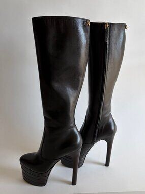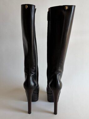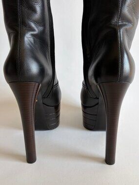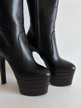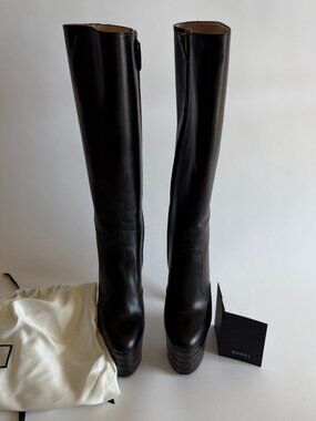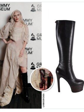 Gucci Angel Stacked Platform Leather Knee High Boots from Pre-Fall 2016 "Angel". As seen on Lady Gaga at the GRAMMY Museum for the . Crafted with high-quality leather, these boots feature a round toe shape and a 6-inch platform heel style that adds a touch of elegance to your overall look.