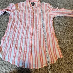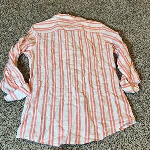 Jones & Co Linen Stripe Button Down Shirt Women Size S Red White Roll Tab Sleeve