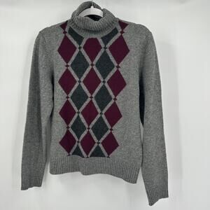 DKNY Womens Turtleneck Sweater Size M Lambswool Argyle Old Money Quiet Luxury