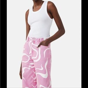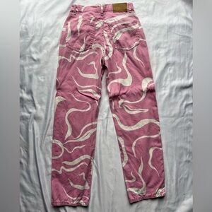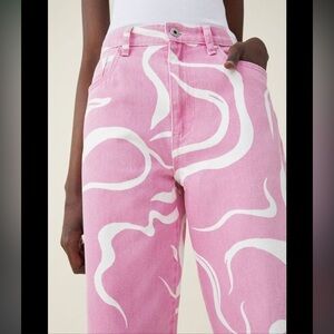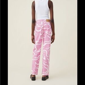Cotton On Pink and White Swirly Loose Straight Jeans 4