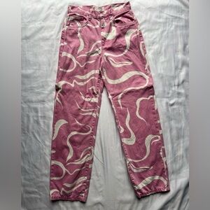Cotton On Pink and White Swirly Loose Straight Jeans. Bubblegum pink with white swirl print all over. Relaxed straight leg denim jeans. Excellent condition. Size US 4.