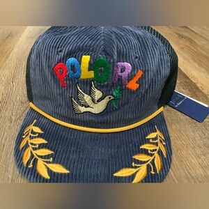 NWT Polo Ralph Lauren Navy Corduroy PEACE LOVE DOVE Trucker Baseball Cap Hat