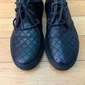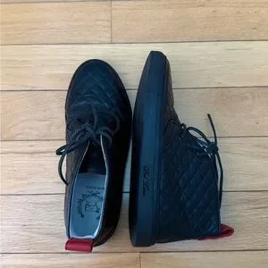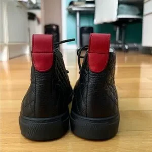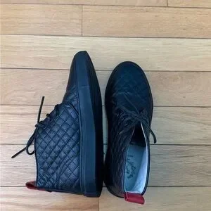 NEVER WORN: Del Toro BLACK High Top Men's Quilted Alto Leather Chukka Sneaker. A total comfort upgrade over their legacy Chukkas. Let your style transform and evolve with the stunning styles of Del Toro. Chukka sneaker silhouette. Leather upper and lace-up front closure connected through reinforced eyelets. Rounded-toe silhouette. Pull-on construction with pull-tab at the back for easy on-and-off. Leather lining. Lightly cushioned leather footbed. Flexible synthetic outsole. Made in Italy. Originally retailing for $275.
