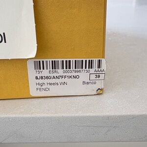 Fendi slingback heels in metallic gold. Pointed-toe with woven textured upper. Slim mid-height stiletto heel. Adjustable slingback strap for a secure fit. Chic, dress-ready silhouette.