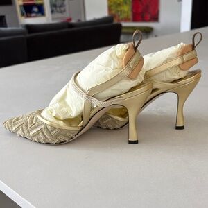 Fendi Metallic Gold Pointed Slingback Heels