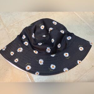 This cute bucket hat features a daisy print on one side and a solid white on the other side for endless styling options.