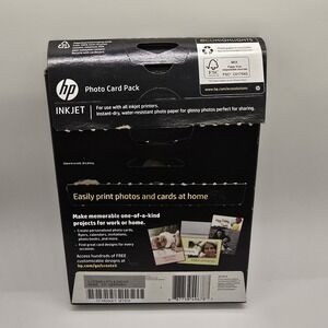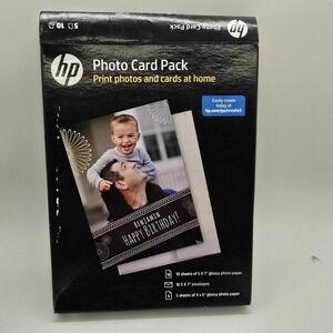 Capture your memories with this brand new HP Photo Card Pack. Included in this pack are 10 sheets of 4x6 glossy photo paper and 5 envelopes to keep your prints safe. This value pack is perfect for anyone who loves to print and wants to save money on ink and paper.