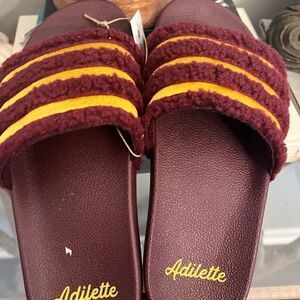 NWT women’s ADIDAS TEDDY SLIDES ADILETTE WITH FAUX FUR UPPER. Size 7