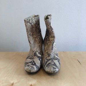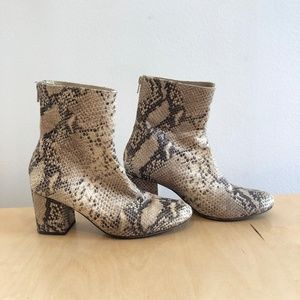 Free People Snakeskin Print Ankle Booties in Beige and Brown