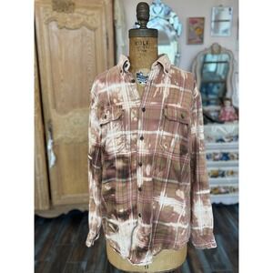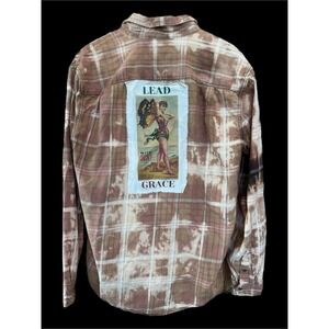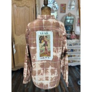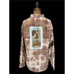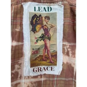 Upcycled Flannel Lead With Grace Fairy Patch Bleach Dye Boho Shirt Medium