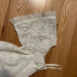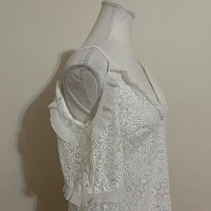 White House Black Market Cream Lace Cold-Shoulder V-Neck Top