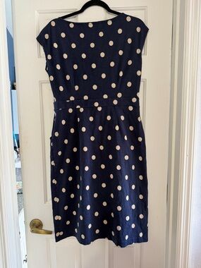 Boden Navy Dress with Cream Polka Dots