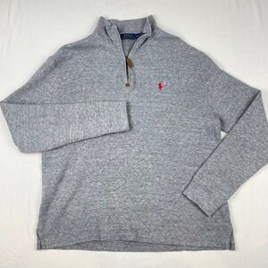 Polo Ralph Lauren Mens Quarter Zip Pullover Heather Grey Red Pony Logo Size M