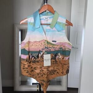 Wrangler Retro Americana Sleeveless Western Snap Shirt Blue Pink Size M NWT