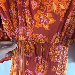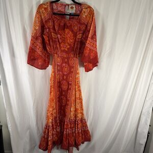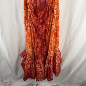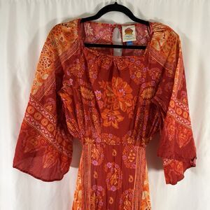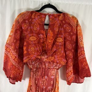 Farm Rio Anthropologie Dress Women's Medium Orange Red Floral Open Back Tie