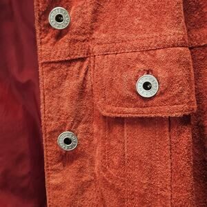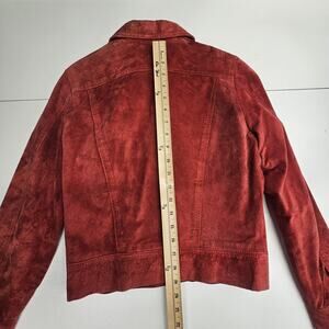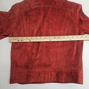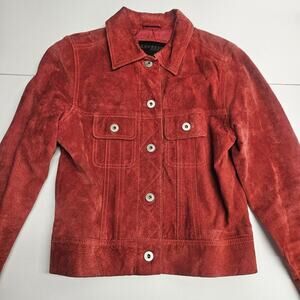 Vtg Y2K Express 100% Genuine Suede Moto Jacket Button Down XS Red Biker