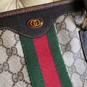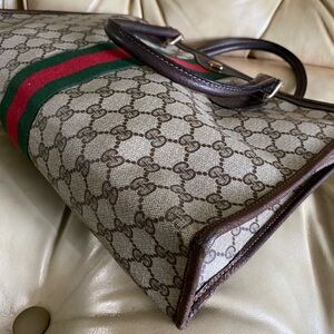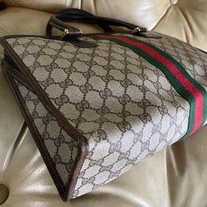Authentic Gucci Vintage Large Tote Unisex Business Bag GG Web Stripe Attache
