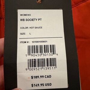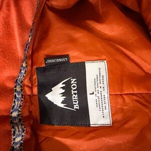 Burton women's snow pants in bright orange. Insulated and weather-resistant fabric. Zippered pockets and reinforced cuffs. Comfortable fit with articulated knees. Great for skiing or snowboarding. Never worn had for a few years but just never took them on the slopes.