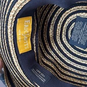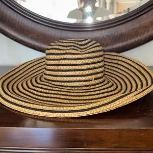 Eric Javits Black and Tan Striped Wide Brim Sun Hat