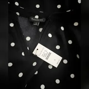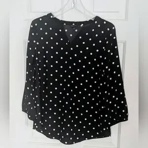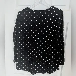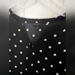 Simple and chic, Talbots classic crepe top is a seasonless essential in an iconic polka dot print. With a fluid drape and cling-free fit, it's easy to style whether tucked in a skirt or untucked with a pair of slim-leg pants. Rounded neckline with a v-neck opening. Subtle shirring at the banded cuff creates a feminine, lantern-sleeve effect for an added element of style. Size Small.