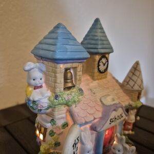 Blue-Roof Bunny School Easter Village