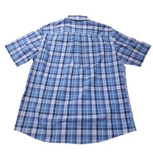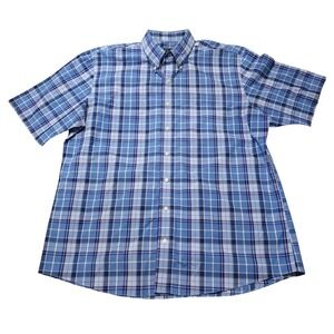 Jos A Bank Traveler Mens XL Plaid Shirt Blue Short Sleeve Button Down
