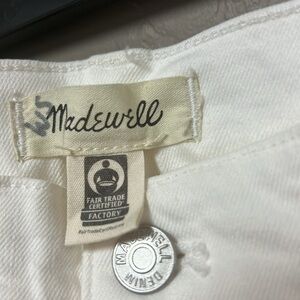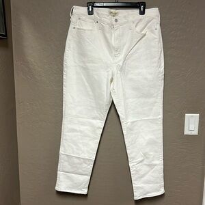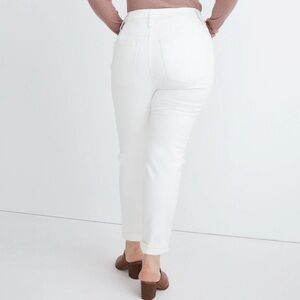 Madewell The Perfect Vintage Jeans With their waist-accentuating high rise and tapered legs, these are "mom jeans". Premium white denim with zero see-through and a touch of body-hugging stretch so they won't bag out.
