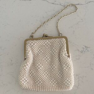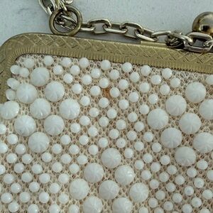 Vintage Beaded Cream Wristlet Bag with Chain Strap