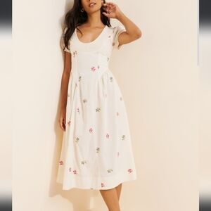 really cute midi dress, new with tags. Tried on once but it's unfortunately a bit big in the chest for me (should fit B cup+ well).