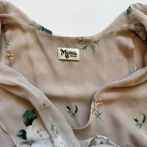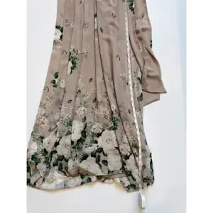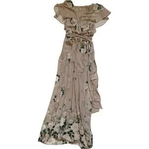 Show Me Your Mumu Audrey Neutral Floral Maxi Dress Women's Medium Bouquet Toss Chiffon Wrap Bridesmaid Wedding Guest Coquette Cottagecore Romantic Soft Girl