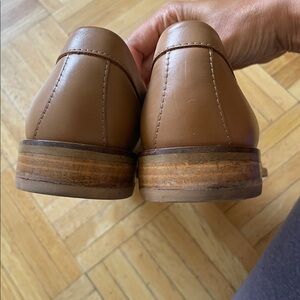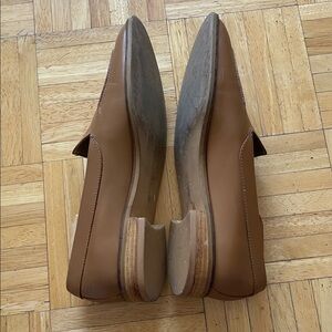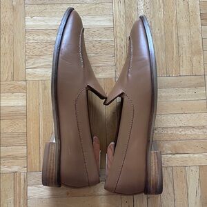 Classic tan leather slip-on loafers with a smooth finish. Comfortable leather lining and a streamlined silhouette for versatile wear. Easy to pair with both casual and dress outfits. Available in tan.