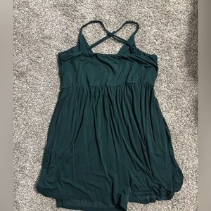 Wishlist Romper. Size large color teal. Has criss cross adjustable straps. V-neck line and lose drapping bottoms make the romper super flattering! Can be worn casually or it is very easy to dress up. Beautiful color!