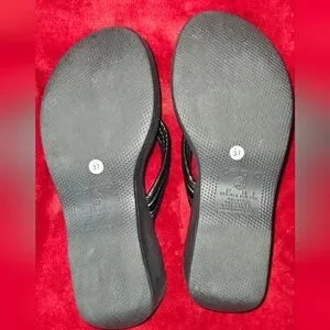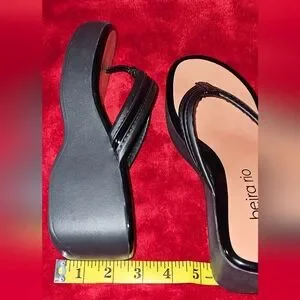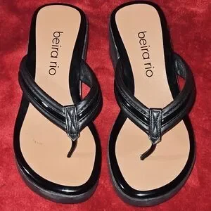 Beira Rio Black Platform Wedge Thong Women's Sandals Made In Brazil - Size 7