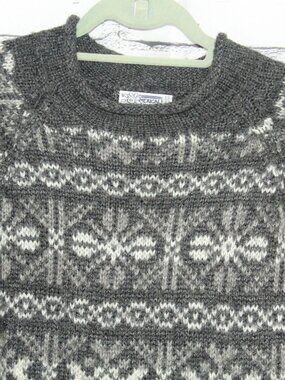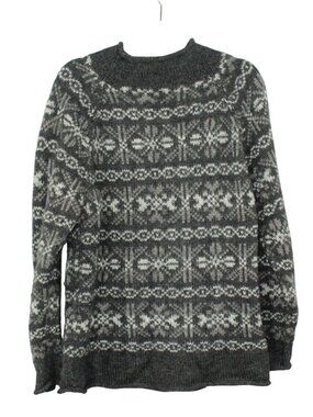 Mexicali Blues Alpaca Wool Gray Fair Isle Crew Neck Sweater Size L Cozycore