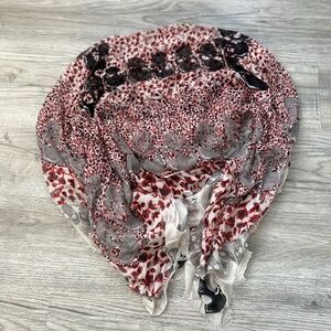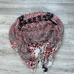 Zadig & Voltaire Red, Black & Gray Printed Silk Scarf