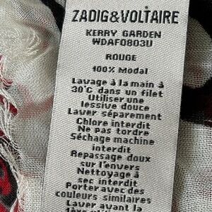 Lightweight Zadig & Voltaire scarf with mixed floral and abstract prints. Soft drape and semi-sheer silk blend. Versatile styling for day or evening wear.